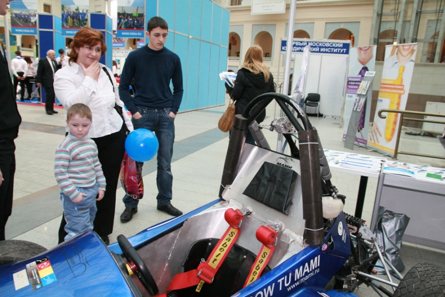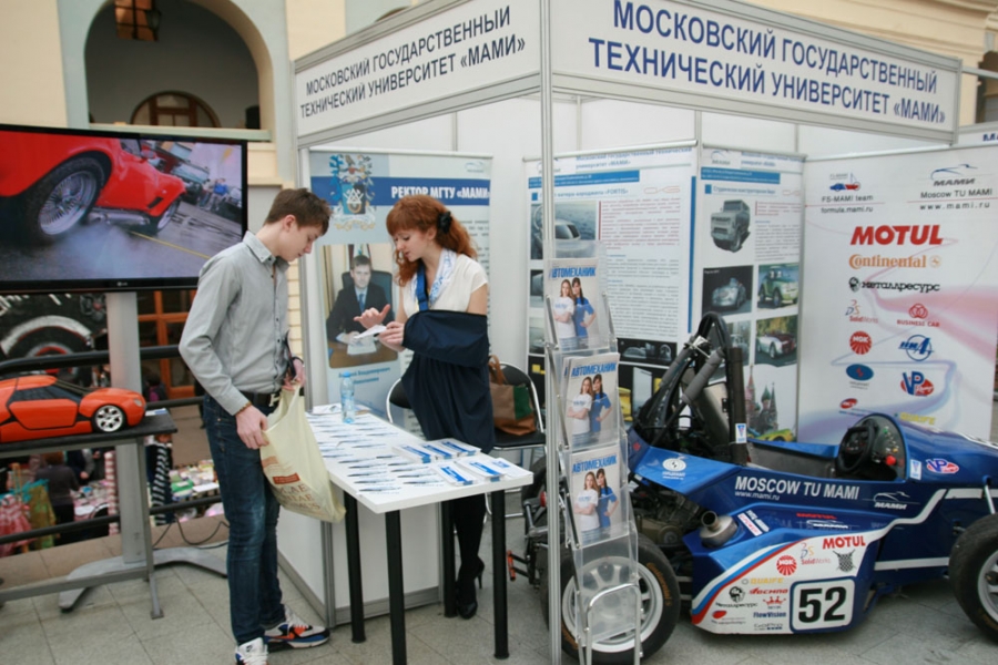 Традиционная Международная выставка «Образование и карьера - XXI век» на этот раз приятно удивила представителей МАМИ и МГУИЭ. Стенды вузов расположились всего в нескольких метрах друг от друга. Оригинальная задумка организаторов выставки или действительно совпадение – уже не имело значение. Будущие абитуриенты получали интересующую информацию от обоих университетов. Свежий номер газеты «Автомеханик», на обложке которого красовались Мисс МАМИ и Мисс МГУИЭ, получился в этой ситуации как нельзя кстати.