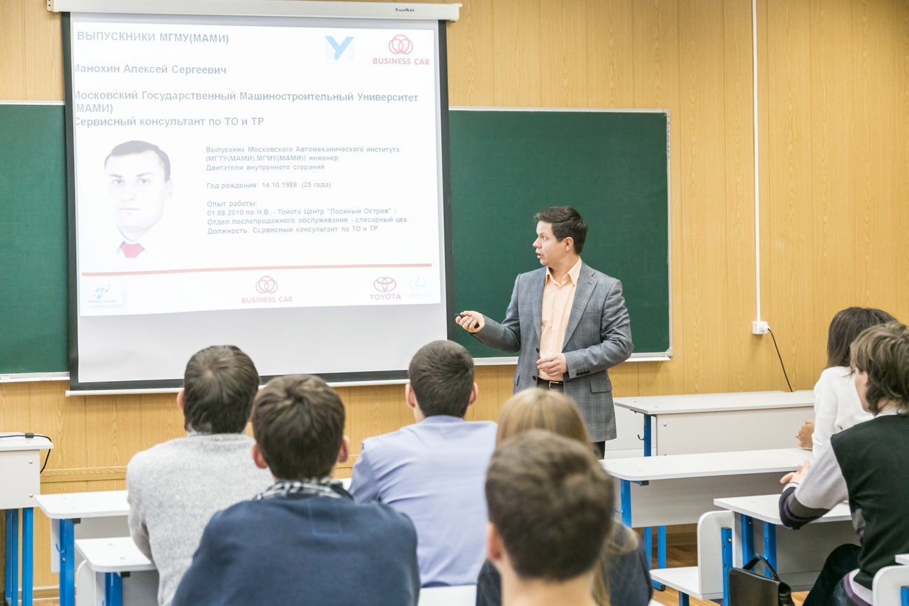 14 ноября 2013 года состоялась встреча студентов Университета машиностроения с представителями одного из ключевых партнеров вуза – компании «СП Бизнес Кар». Более 40 участников мероприятия – обучающиеся различных специальностей и курсов университета, получили возможность в подробностях узнать о возможности построения карьеры в крупнейшей российской компании-дилере автомобилей Toyota и Lexus.